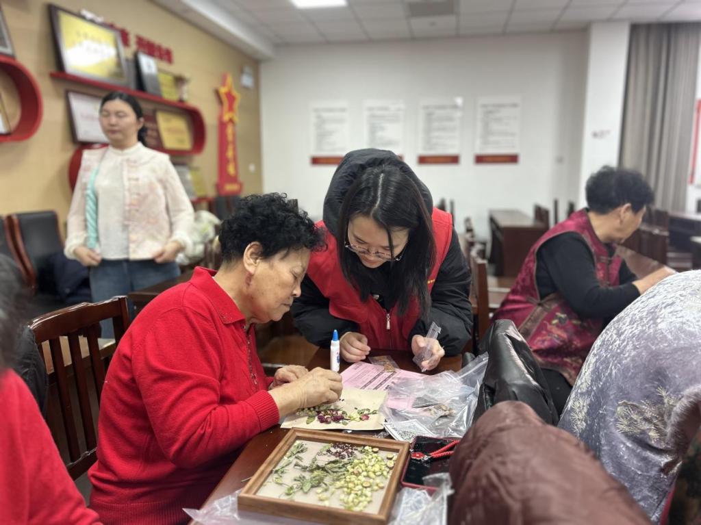 随后,志愿者细致讲解中草药知识、标本画创作技巧与制作流程,同时贴心分发画纸、中草药材料、胶水、夹子等工具,为大家的创作保驾护航。从药材辨识到构图粘贴,志愿者们和社区工作者一步步耐心指导参与活动的社区居民。